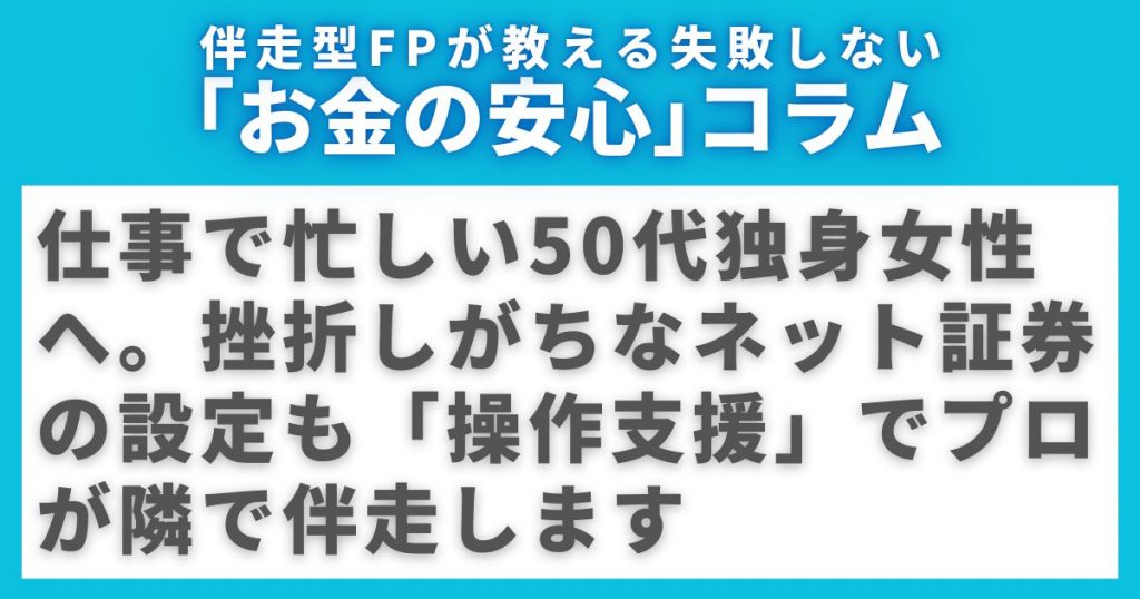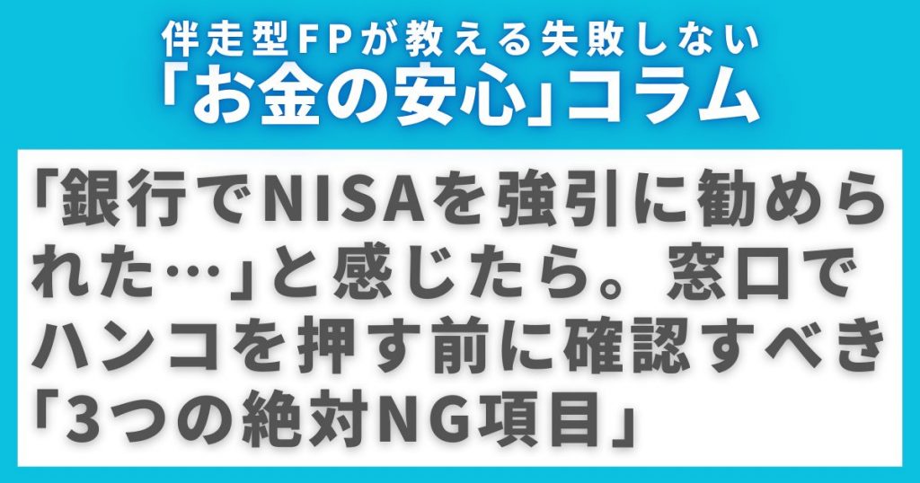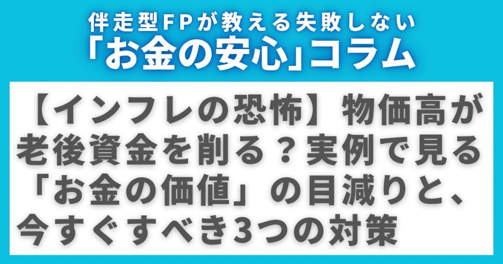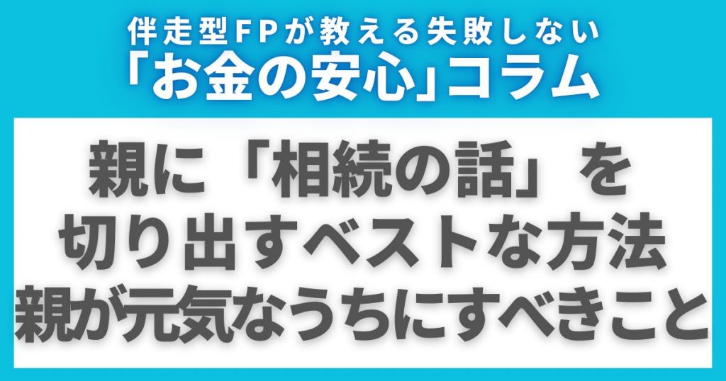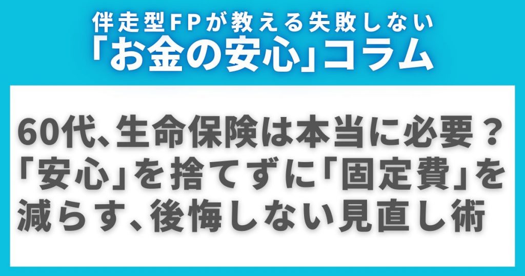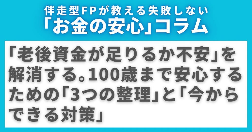 大人世代にお届けする「お金の安心」コラム。35年の経験を持つ伴走型FPが、NISAの始め方、退職金や年金の有利な受取方法、老後資金の不安解消法、病気や介護への備え方、親や自身の相続対策などについて分かりやすく解説。難しい専門用語なしで、あなたのライフプランを支える知恵をお伝えします。